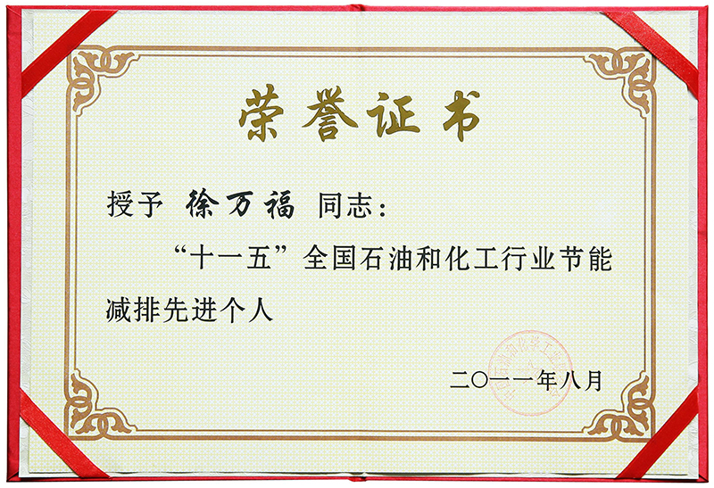 常務(wù)副總徐萬(wàn)福榮獲“十一五”全國(guó)石油和化工行業(yè)節(jié)能減排先進(jìn)個(gè)人。